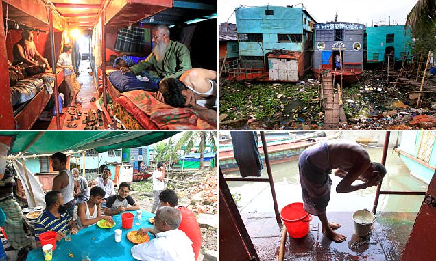 Siraj Mohammad, 55, is a fruit seller who has spent more than 40 years in these floating hotels - staying between his home in Shariatpur and Dhaka.