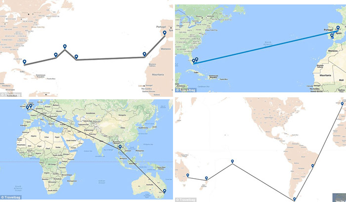 Paul Hopkinson, marketing director at Travelbag, said: 'It's inspiring to follow in the steps of these renowned explorers, learn more about their accomplishments and see how long their expeditions would take using modern-day travel methods.'