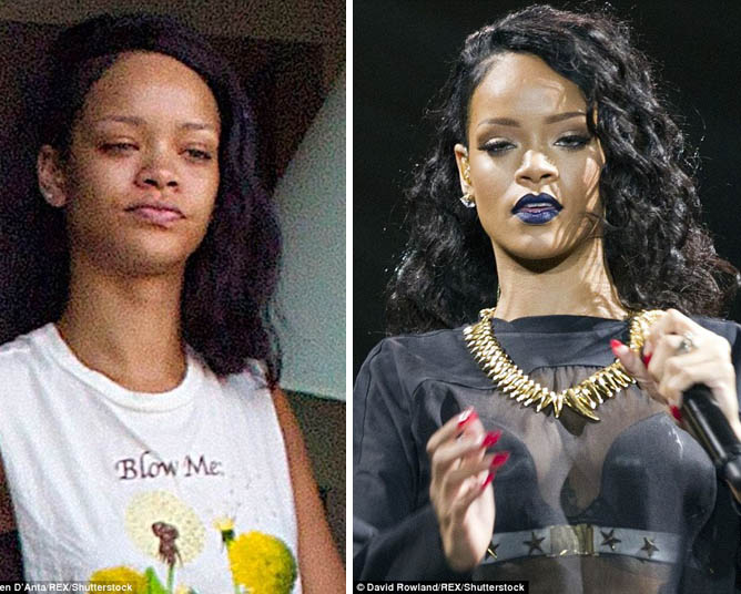 Penyanyi Ellie Goulding, 29 INI DIA bukti bahwa aktris filim, foto model, penyanyi kondang harus kerja keras mengenakan make-up untuk mendapatkan penampilan prima, guna menutupi muka mereka yang letih, kusam, setelah difoto pada hari yang sama dan dalam beberapa jam kemudian tampang mereka berubah total lantaran perias wajah seperti dilansir MailOnline.