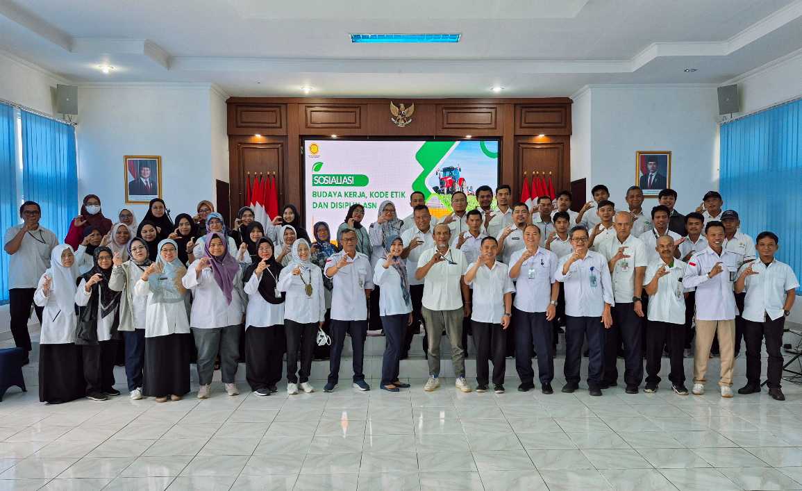 Materi sosialisasi disampaikan oleh Analis SDM Aparatur Ahli Muda Biro Organisasi dan SDM Aparatur Kementan, Dwi Kurnia Rachman yang menegaskan bahwa pemahaman terhadap aturan kepegawaian, kode etik dan disiplin pegawai merupakan fondasi penting membangun birokrasi profesional berintegritas.