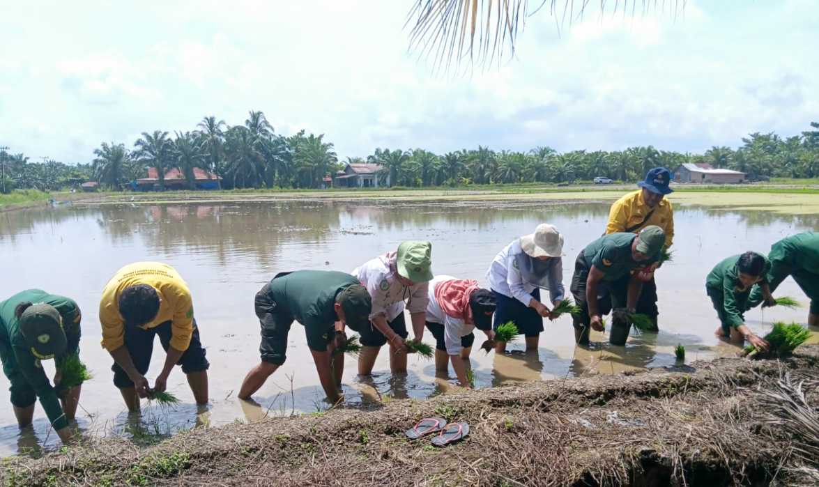 Labuhan Batu Utara (B2B) - Brigade Pangan (BP) di Desa Sei Apung, Kecamatan Kualuh Lihir, Kabupaten Labuhan Batu Utara (Labura) di Provinsi Sumatera Utara berpartisipasi pada kegiatan Tanam Padi Serentak di 14 provinsi secara nasional yang dipimpin oleh Presiden Prabowo Subianto pada Rabu (23/4/2025).
