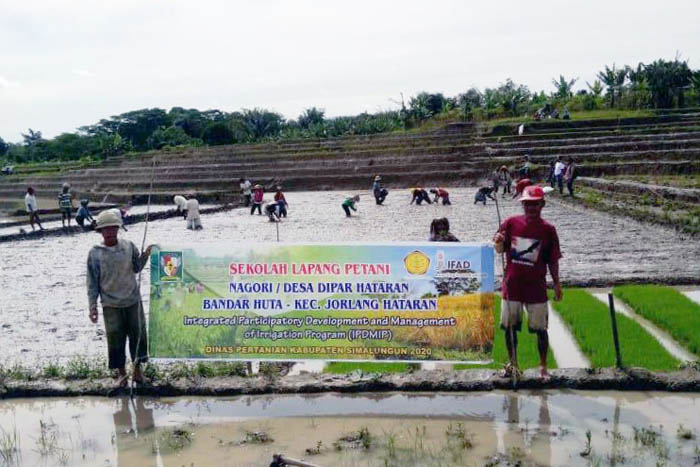 Sistem penanaman Jarwo menjadi fokus Sekolah Lapang [SL] yang digelar oleh IPDMIP di Desa Dipar Hataran, Kecamatan Jorlang Hataran. Peserta SL IPDMIP 30 orang dari Kelompok Tani [Poktan] Bandar Jaya, memanfaatkan laboratorium lapangan sebagai wadah pembelajaran seluas 0,1 hektar dengan menanam varietas Inpari 32.